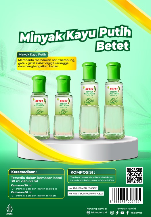 Tiap botol mengandung Oleum Melaleuca Leucadendra Folium (Oleum Cajuputi) 100%
